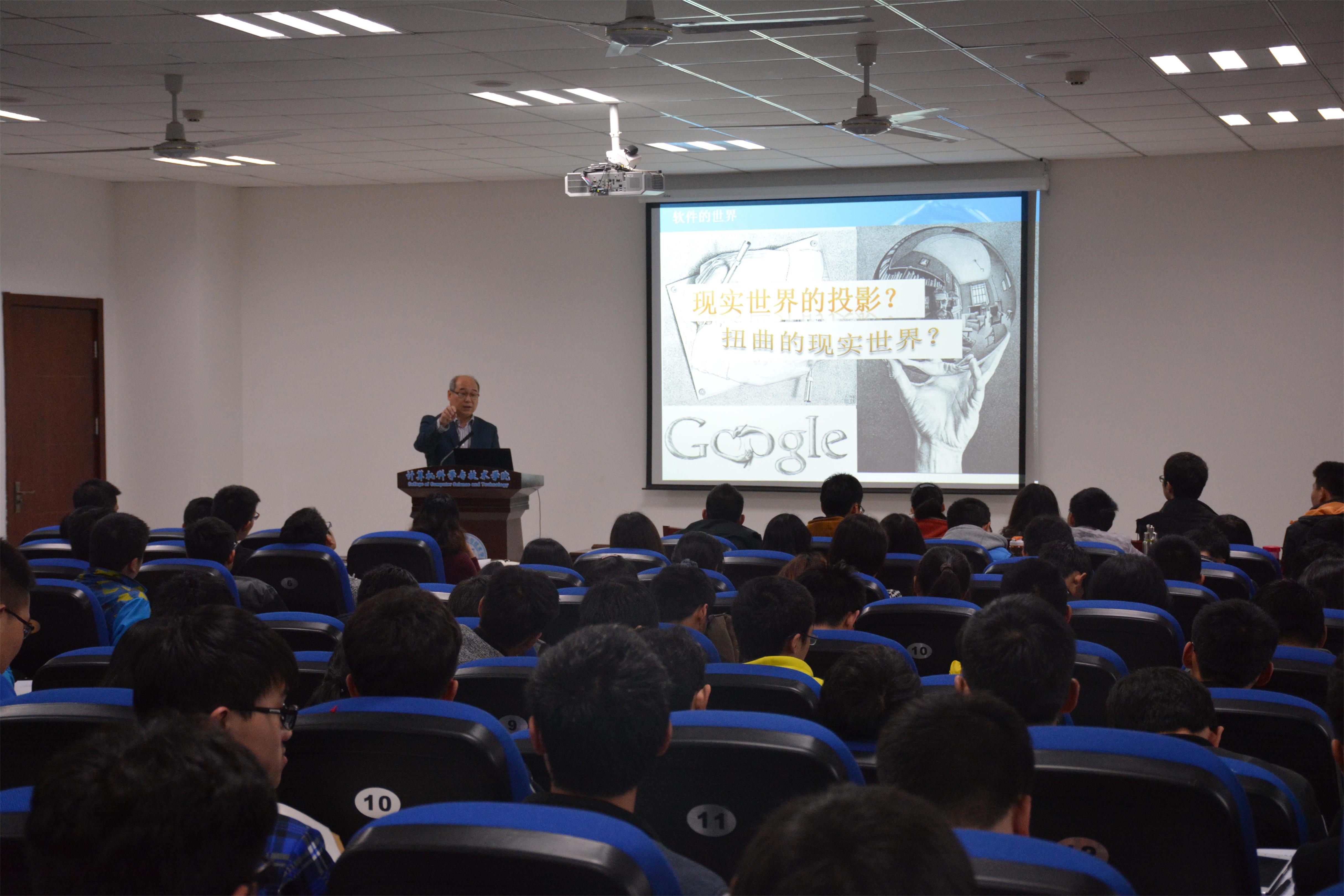 启动视频之后,陈兵向同学们简要介绍了开展活动的初衷、意义、拟开展的形式和后续计划等。黄志球将计算思维与校训融合在一起,从“计算之智周万物”、“睿智慧眼识真知”、“思维有道济天下”、“术道合一创未来”四个层面出发,层层递进、深入浅出,在“如何用计算思维来探索软件世界”中,开启对同学们的导航之旅。讲座中,黄志球用生动的事例告诉同学们计算思维在影视、音乐、绘画等方面如何体现,他将计算机科学总结为以计算思维为基础,以科学的思维、工程的方法,创造虚拟新世界。黄志球还与现场学生进行了互动交流,对同学们提出的“如何在平时学习中培养计算思维”、“如何进一步提升专业兴趣”等问题一一作答,他希望同学们在低年级夯实专业基础,在高年级勇于创新实践,用计算思维开创自己的美好未来。