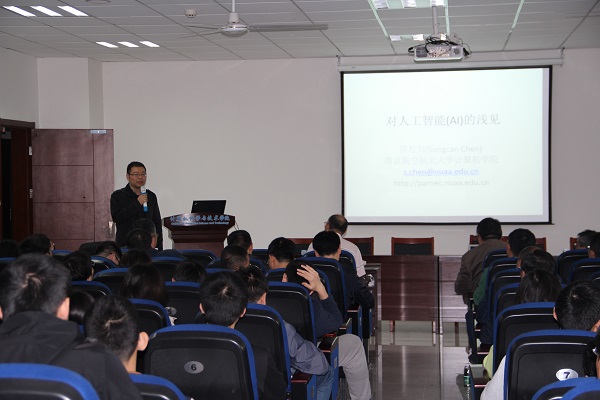 会上,科研院邀请了无人机与人工智能领域专家教授相继做报告交流。首先由beat365陈松灿教授介绍了人工智能的发展历程、重要技术与应用前景、当前的局限和挑战,以及我国人工智能的发展目标;随后,beat365陈鸣教授汇报了关于无人机蜂群的相关理论与技术挑战;接着,自动化学院徐贵力教授讲解了面向无人机的光电感知技术;盛守照教授探讨了无人机智能化的现时技术瓶颈与思考;李春涛副研究员分析了智能飞行控制技术的机遇与挑战;彭聪副研究员综述了人工智能之计算机视觉进展情况;最后,材料学院汤晓斌教授展示了基于无人机平台与人工智能的放射性监测系统研究。参会教师认真听取各位教授的精彩汇报,结合自身工作研究领域积极向教授提问,开展进一步的交流和讨论。