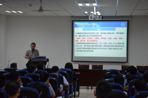 院长陈兵对学院暑期工作进行了简要总结,充分肯定学院在各方面取得的阶段性成果,衷心感谢为之付出辛勤努力的老师们,并根据学校暑期干部教师大会精神,结合学院实际,对下半年重点工作进行了具体布置。他强调,要在抓好学科建设、学风建设、教育思想大讨论等工作的基础上,下大力气抓好人工智能相关工作、国家级成果培育和国际交流等工作,扎实推进学院综合改革。他号召全院教职工积极行动起来,撸起袖子加油干,为推动学院快速健康发展、为实现学校“双一流”建设目标而努力奋斗。
