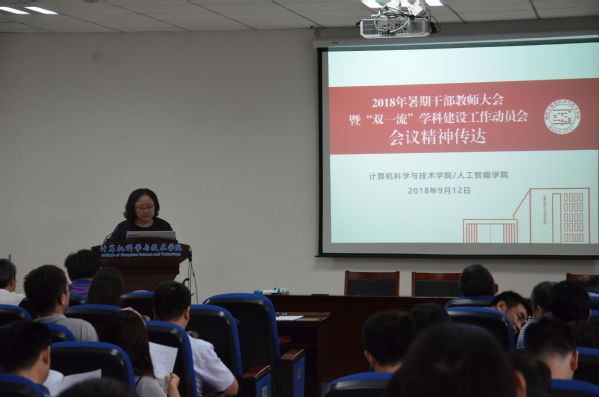 9月12日下午,计算机科学与技术学院/人工智能学院在学院113报告厅召开了全体教职工大会,传达学校暑期干部教师大会精神,总结布置学院工作,介绍2018级本科人才培养方案修订情况。学院党政领导班子成员和全体教职工参加了本次会议,会议由学院院长陈兵主持。