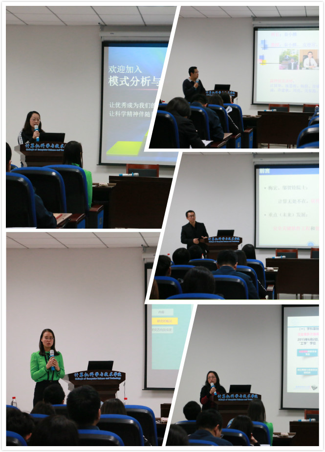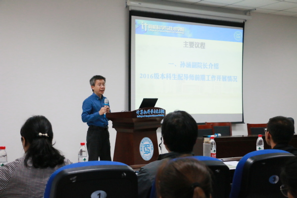 首先,孙涵副院长简要介绍了本科生配导师的前期情况,此项工作开展以来,近百名2016级本科生已成功配备学术导师。他提到学院已经为本科生打开了学术研究的通道,为研究性学习搭建了师生平台,希望同学们积极把握身边资源提升自我。他认为本科生的潜力是无限的,以上一届本科生谢明昆为例,相信有目标、有信心,积极跟进导师团队,坚持不懈就会有更大的收获。接着,模式分析与智能计算研究所、软件研究所、数据管理与知识工程研究所、网络与信息安全研究所、网格与云计算研究所的所长助理分别对各个研究所的基本情况、研究方向以及师资力量等进行了介绍,并希望同学们能进入导师团队提升自身的专业能力和学术水平。