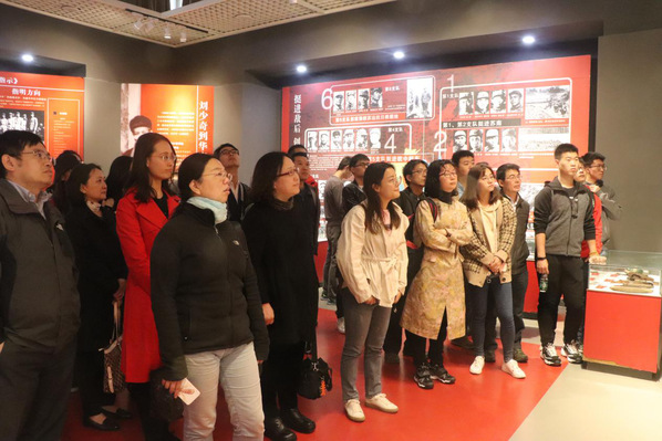 在黄花塘新四军军部纪念馆,伴着讲解员的详细介绍,全体党员参观了军史陈列室、文化艺术馆等,深入了解了新四军光辉的战斗历程和老一辈无产阶级革命家的丰功伟绩。参观过程中,大家不时驻足、仔细观看展馆中的一幅幅照片、一首首诗歌、一件件展品,切身感受在那战火纷飞的年代和无比艰苦的环境中,革命前辈的崇高品德和大无畏的牺牲精神。在张云逸同志的题词“浪费是极严重的事,与贪污都同样是危害革命的行为。一粒米,一寸布,一文钱,都是工农兵的血汗换来的”面前,大家感慨万千,纷纷表示,一定要传承和发扬革命先烈艰苦朴素的优良传统,永葆共产党人爱国奋斗的革命精神和永恒不变的政治本色,坚定实现中华民族伟大复兴的信心,牢记“全心全意为人民服务”的宗旨,廉洁自律、立德树人,爱岗敬业、奋发有为,甘于奉献、尽职尽责,为落实校第十六次党代会决策部署、全力奋战“双一流”建设做出积极的贡献。