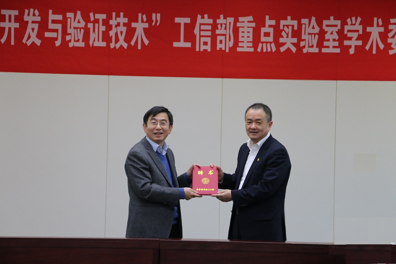 第一阶段的开幕式由南京航空航天大学计算机科学与技术学院院长陈兵教授主持。首先,施大宁副校长致欢迎辞,欢迎学术委员会的各位专家来到南京航空航天大学支持重点实验室的建设。接着,沈建新副院长宣读了工信部重点实验室的相关文件和要求,从制度上对重点实验室的发展做出了规范。最后,施大宁副校长为各位学术委员会委员颁发聘书并合影。