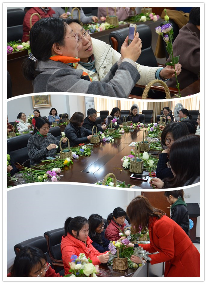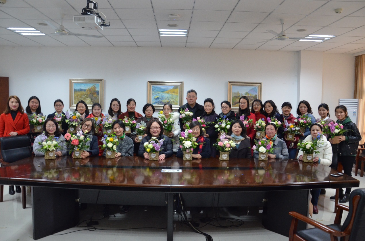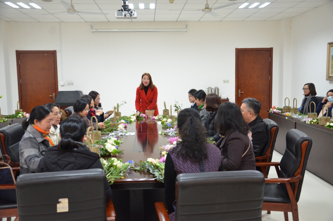 党委书记刘健荣、院长陈兵首先向全院女教工致以节日的问候。活动开始后,花艺老师向大家细致地讲解了各类花型和每种花卉表达的寓意,并亲手示范多种造型的插花,将中国传统的插花艺术生动地展现在每位女教工面前。
