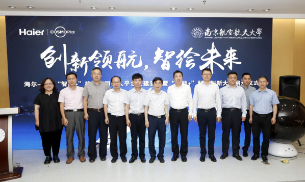 6月13日,海尔-南航“智能+”校企协同育人平台共建签约暨“智能+”科技创新大赛启动仪式在我校举行。海尔家电产业集团副总裁陈录城、智能制造总经理张维杰、制冷产业智能制造技术总监段志国、海尔数字科技(南京)有限公司总经理任学良、海尔工业智能研究院技术总监刘子力等一行11人,我校副校长施大宁,教务处、科研院、研究生院、学生处、团委等部门负责同志,航空学院、机电学院、经管学院、计算机科学与技术学院/人工智能学院领导和师生150余人参加活动。