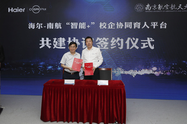 在海尔-南航“智能+”校企协同育人平台共建签约暨“智能+”科技创新大赛启动仪式上,施大宁代表学校致欢迎辞,他表示,在新工科建设背景下,海尔与南航洽谈校企协同育人,是顺应和契合新工科背景下人才培养的迫切需要,这是机遇和动力,更是挑战和压力。通过海尔-南航“智能+”校企协同育人平台,校企双方一定可以充分发挥各自特长,促进教育链、人才链与产业链、创新链有机衔接,实现资源共享、信息共享、优势互补、合作共赢。陈录城代表海尔讲话,他围绕“我们为什么共建‘智能+’校企协同育人平台”、“我们共建‘智能+’校企协同育人平台有哪些优势”、“我们如何共建‘智能+’校企协同育人平台”三个问题展开,回溯了合作的背景,并充分肯定了此次“智能+”校企协同育人平台共建的重要意义。施大宁和陈录城共同签署海尔-南航“智能+”校企协同育人平台共建协议。根据协议,校企双方将实现各类科创基地的资源共享,为新工科人才培养提供有力的基础条件与政策保障。之后,校企双方还签约了工业控制安全示范线共建协议,并共同为海尔-南航工业智能联合实验室揭牌。