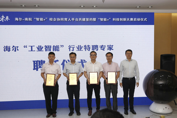 为进一步推进校企之间的资源互通、优势互补,学校聘请海尔集团段志国、任学良、刘子力、石恒担任“智能+”科技创新大赛行业特聘导师,孔垂谦为各“行业特聘导师”颁发聘书。同时,海尔工业智能研究院聘请我校航空学院教授魏小辉、机电学院教授郭宇、经管与管理学院教授朱建军、计算机科学与技术学院/人工智能学院教授赵蕴龙担任海尔“工业智能”行业特聘专家,张维杰为各“行业特聘专家”颁发聘书。