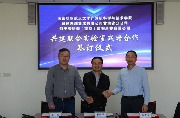 10月16日上午,计算机科学与技术学院/人工智能学院与联通系统集成有限公司甘肃省分公司、航天壹进制(南京)数据科技有限公司举行了共建联合实验室战略合作签约仪式。联通系统集成有限公司甘肃省分公司总经理董锦华、技术总监周坤,航天壹进制董事长张有成,计算机科学与技术学院/人工智能学院党委书记刘健荣、院长陈兵、副院长赵蕴龙等共同参加签约仪式。