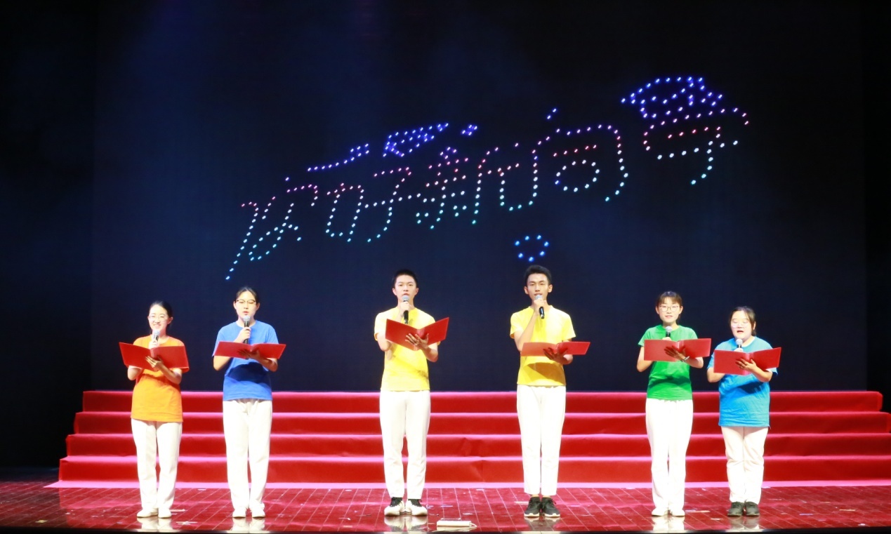 在第一篇章的最后,2019年暑期社会实践团队代表通过音诗画《向祖国报告》,回顾了暑期实践的精彩片段,展现了当代青年学生的爱国热情和奋斗豪情。