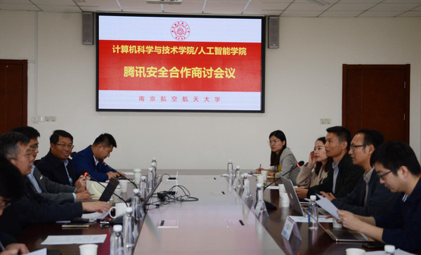 会上,陈兵全面系统地介绍了学院及网络空间安全学科的发展历史、总体概况、科学研究和国际合作情况。他指出,学院结合我校航空航天民航特色,大力发展网络空间安全,为航空航天系统生态提供安全保障,希望能依托学院高质量的人才团队,优越的科研环境和广阔的发展前景,与腾讯金融科技开展一系列的合作。