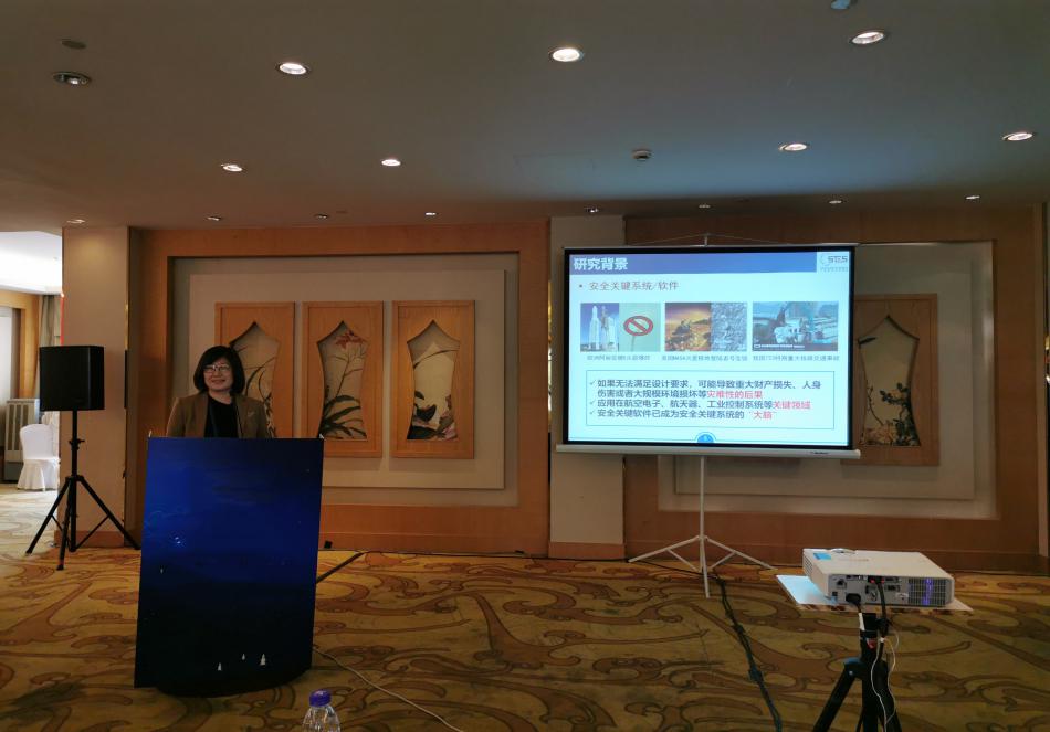 黄志球从基础研究进展、关键技术突破、重要成果形式等方面对实验室年度工作情况进行整体汇报。报告指出,本年度实验室在智能化安全软件开发、飞控软件形式化、复杂战场态势感知等方面取得较大进展,牵头KJW创新项目和ZF预研项目,发表了CCF A类论文10篇以上。岳涛代表重点实验室从面向复杂工业系统的建模方法、不确定性分析方法、基于搜索的持续优化测试方向等方面对安全软件建模与分析最新的研究进展进行学术汇报。