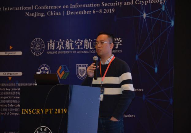 2019年12月6日至8日,由国际密码协会(IACR)、中国科学院信息安全国家重点实验室和南京航空航天大学联合主办的第十五届信息安全与密码学国际会议(Inscrypt 2019)在南京顺利召开。会议得到了国内外密码学及信息安全领域专家学者的积极响应,来自中国、美国、法国、日本、印度、新加坡、澳大利亚等国家的200余名代表出席了本次盛会。