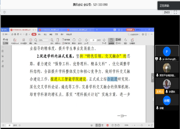 会上,党员们围绕疫情防控、人工智能学院建设、人才培养、教学科研、校院管理、教育改革等认真开展了讨论,大家集思广益、畅所欲言,从各方面提出了中肯的意见建议,为学校、学院发展献计献策、加油助力。