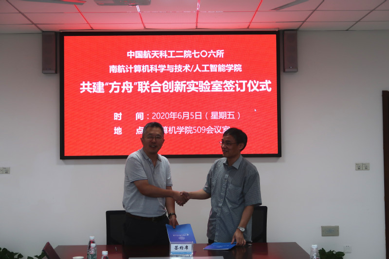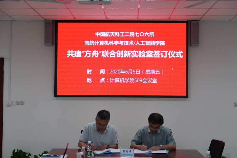6月5日,由我院与中国航天科工集团第二研究院七〇六所共建的“方舟”联合创新实验室签约仪式在将军路校区beat365509会议室举行。中国航天科工集团第二研究院七〇六所科技委副主任蒋志翔、发展计划处处长赵晓燕、科研管理处副处长冯大成;计算机科学与技术/人工智能学院院长陈兵、副院长张道强、燕雪峰等出席本次签约仪式。本次签约仪式由燕雪峰副院长主持。