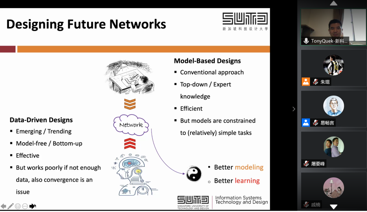 Tony Q.S. Quek教授介绍了无线通信系统理论香农定理,以及在机器控制和通信方面的里程碑式发现,并针对未来无线网络系统中的建模、学习和控制问题进行探讨,最后着重分享了在此领域的一些重要的发现。