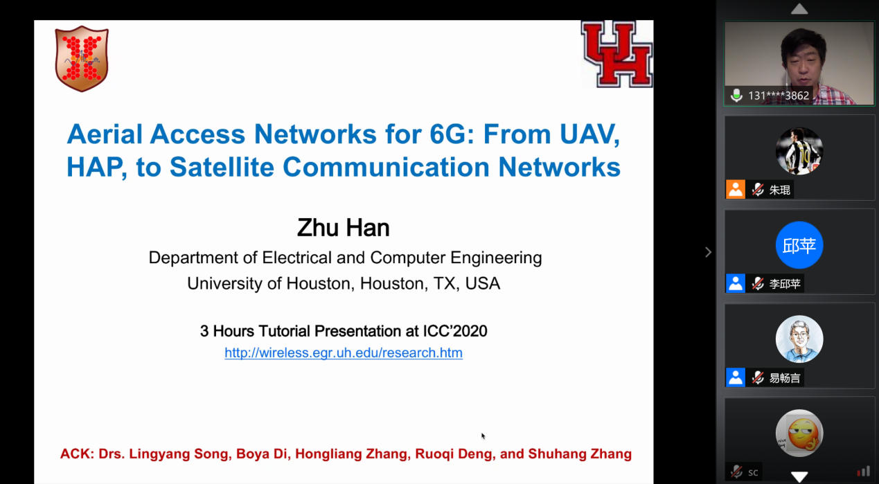 在南京航空航天大学人工智能学院成立两周年之际,学院于6月29日举办了“AI empowered wireless networking”(AI赋能无线网络)专场线上学术报告会。会议邀请加拿大维多利亚大学Lin Cai教授(IEEE Fellow)、美国休斯敦大学Zhu Han教授(IEEE Fellow)、加拿大约克大学Ping Wang教授、新加坡科技设计大学Tony Q.S. Quek教授(IEEE Fellow)四位专家做学术报告。各位专家围绕AI赋能无线网络技术等前沿问题和研究进展进行了详细的汇报。会议采用腾讯会议进行,吸引了三百余位来自全国各地的师生们参加,取得了圆满成功。