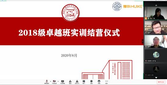 8月5日,2018级卓越班同学迎来了暑期实训项目的验收评审,由于今年的特殊原因,整个暑期实训全部采用了“云端”模式,验收评审也在线上进行。这是对同学们暑期实训的检验,也是学生风采的一次展示。南京林业大学信息学院院长业宁、南京工业大学beat365副院长刘学军、南航beat365/人工智能学院副院长赵蕴龙、院长助理李鑫、慧科教育科技集团有限公司周晓杰、徐达、张峻等位5企业导师代表出席了本次活动,活动由慧科公司大数据分析师EMO丁蕾老师主持。