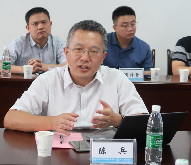 首先,院长陈兵代表学院对王怀民院士的到来表示热烈欢迎,他重点围绕人才培养、师资队伍、科学研究等方面介绍了学院近年来的建设发展情况,并对软件工程学科在第五轮学科评估中的总体情况进行了简要汇报,指出学院发展面临的机遇与挑战。