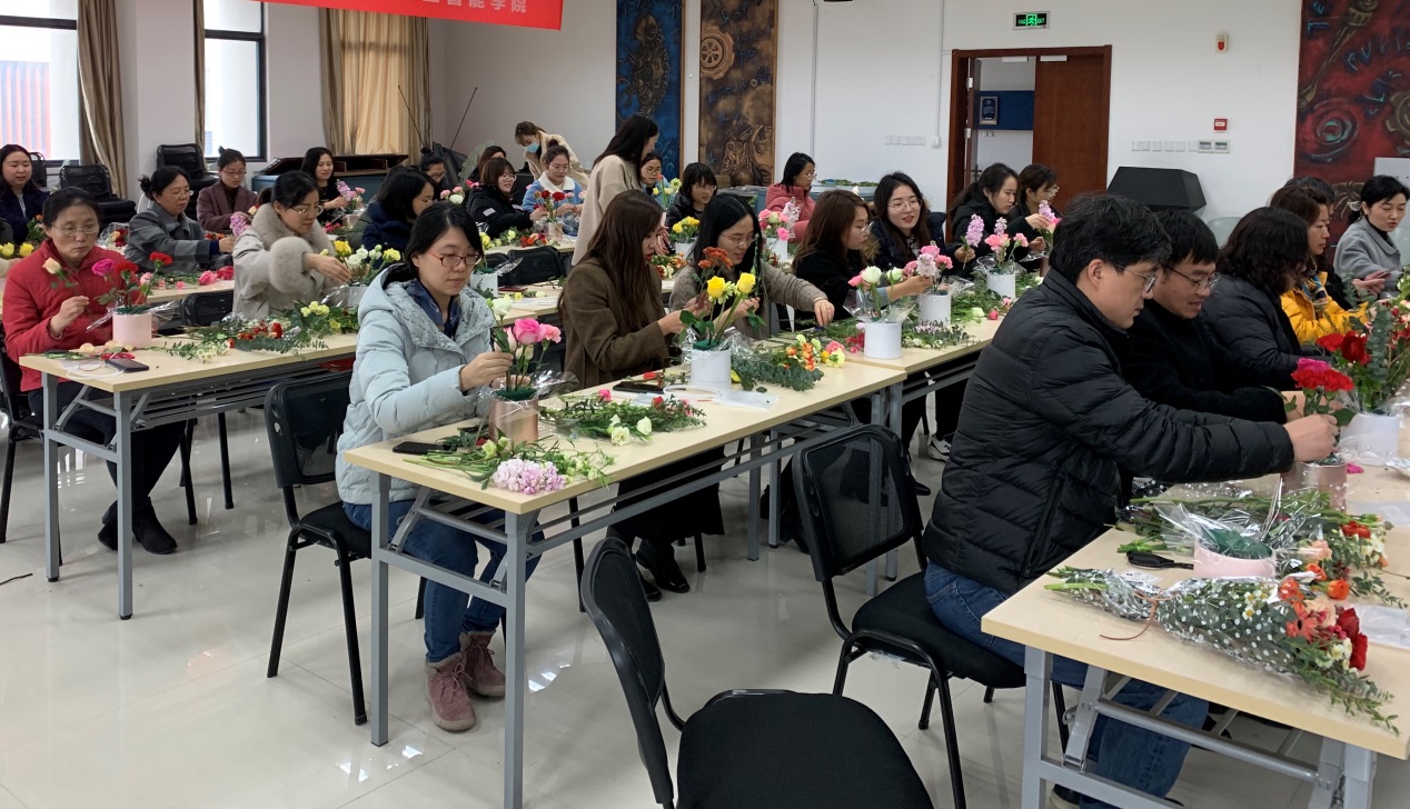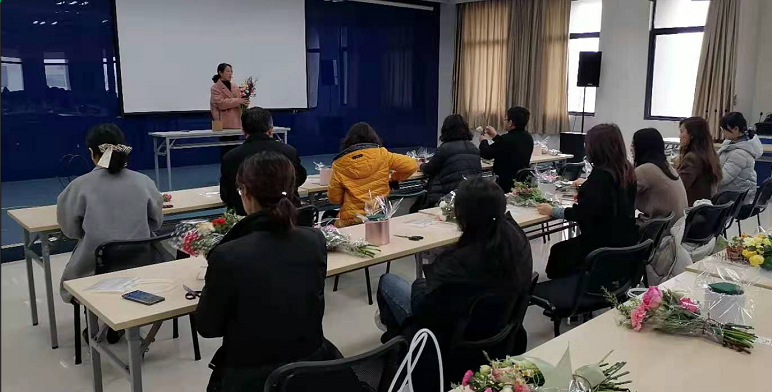 学院领导班子参加活动,并向辛勤工作的全体女教工致以节日的问候和祝福,对大家长期以来为学院发展作出的贡献表示感谢。随后,活动在轻松愉快的氛围中拉开帷幕,花艺老师向大家讲解了各类花卉蕴含的花语和祝福,细致讲授了花卉选择、颜色搭配、花枝修剪等花艺知识,并示范了插花的技巧和方法,带领大家走进缤纷的花艺世界。