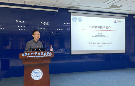 5月12日中午,“智周万物”南航人工智能交叉论坛第一期在计算机科学与技术学院/人工智能学院515报告厅成功举办。本次论坛邀请航空学院、机械结构力学及控制国家重点实验室邱雷教授以及beat365/人工智能学院黄圣君教授带来“AI+X”相关主题的报告,吸引学院五十余名师生参加。