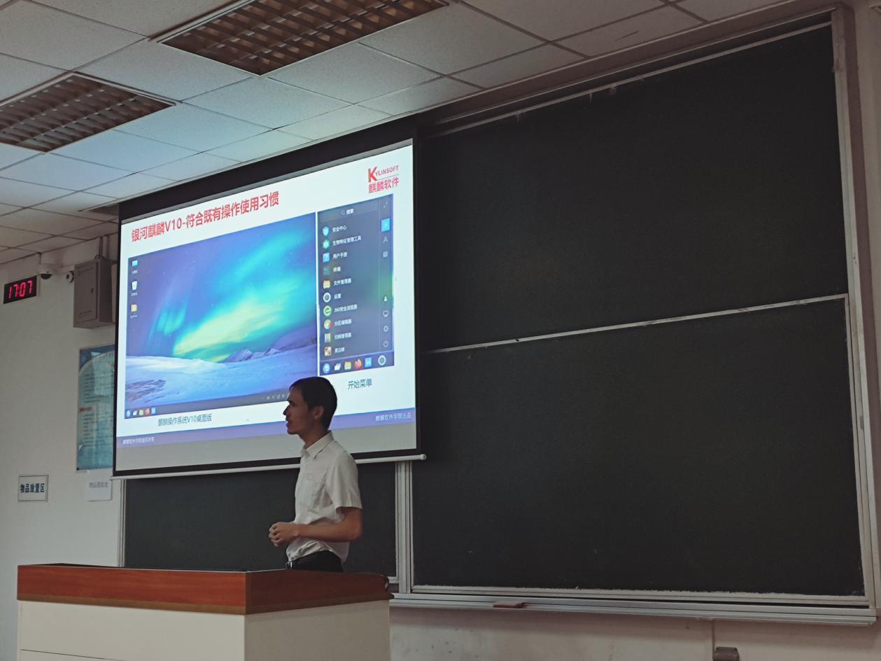 2021年6月18日,计算机科学与技术学院/人工智能学院携手麒麟软件学院面向全校师生组织开展“麒麟大讲堂”专题讲座,本次讲座由麒麟软件高级工程师、麒麟学院资深讲师黄海杰主讲,讲座题目为“网信时代国产操作系统发展之路”。