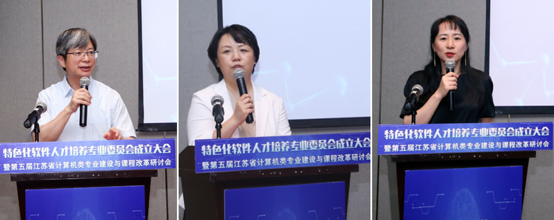 6月20日上午,陈兵主持大会开幕式。邵进、张巍和金莹分别代表省教育厅、省工信厅、江苏省计算机学会致辞,邵进表示期待特色化软件人才培养专业委员会能够切实加强校企产学研深度合作,结合关键基础软件、大型工业软件、行业应用软件、新型平台软件、嵌入式软件五大领域共建一批校企课程,并担负起特色化软件人才培养的遴选组织、建设协调等工作。张巍对省软件产业的发展趋势、2020年工作情况作了详尽分析,她表示特色化软件人才培养专业委员会的成立,为发现、培养、集聚更多优秀软件人才提供了一个良好的平台。他们将以此为契机,把软件人才工作摆在更加突出的位置,充分发挥高校在人才培养方面的骨干作用,不断加强产学互动。金莹对特色化软件人才培养专业委员会的成立表示了热烈祝贺,她希望专委会能快速发展,探索具有江苏特色的软件人才培养模式。