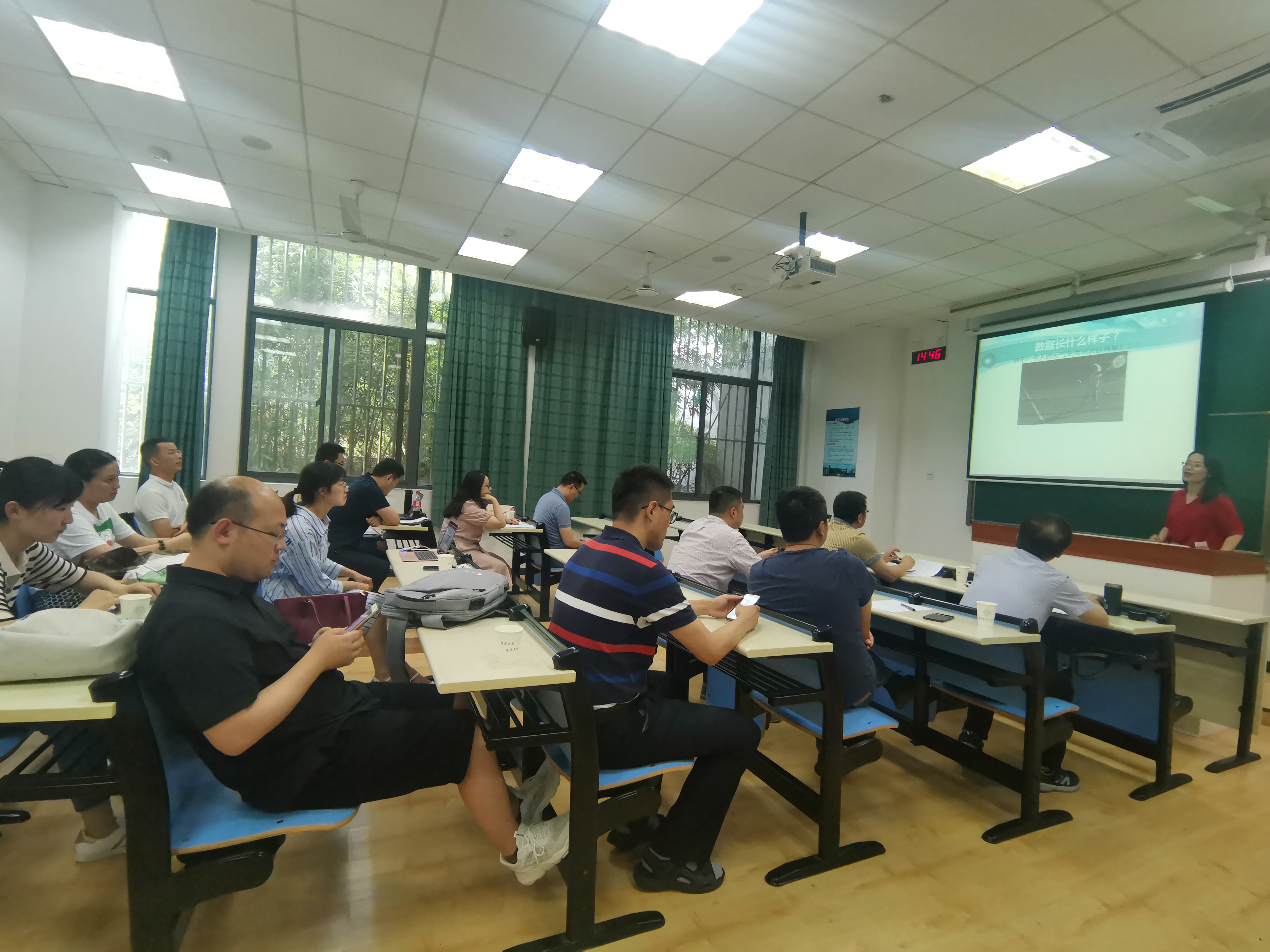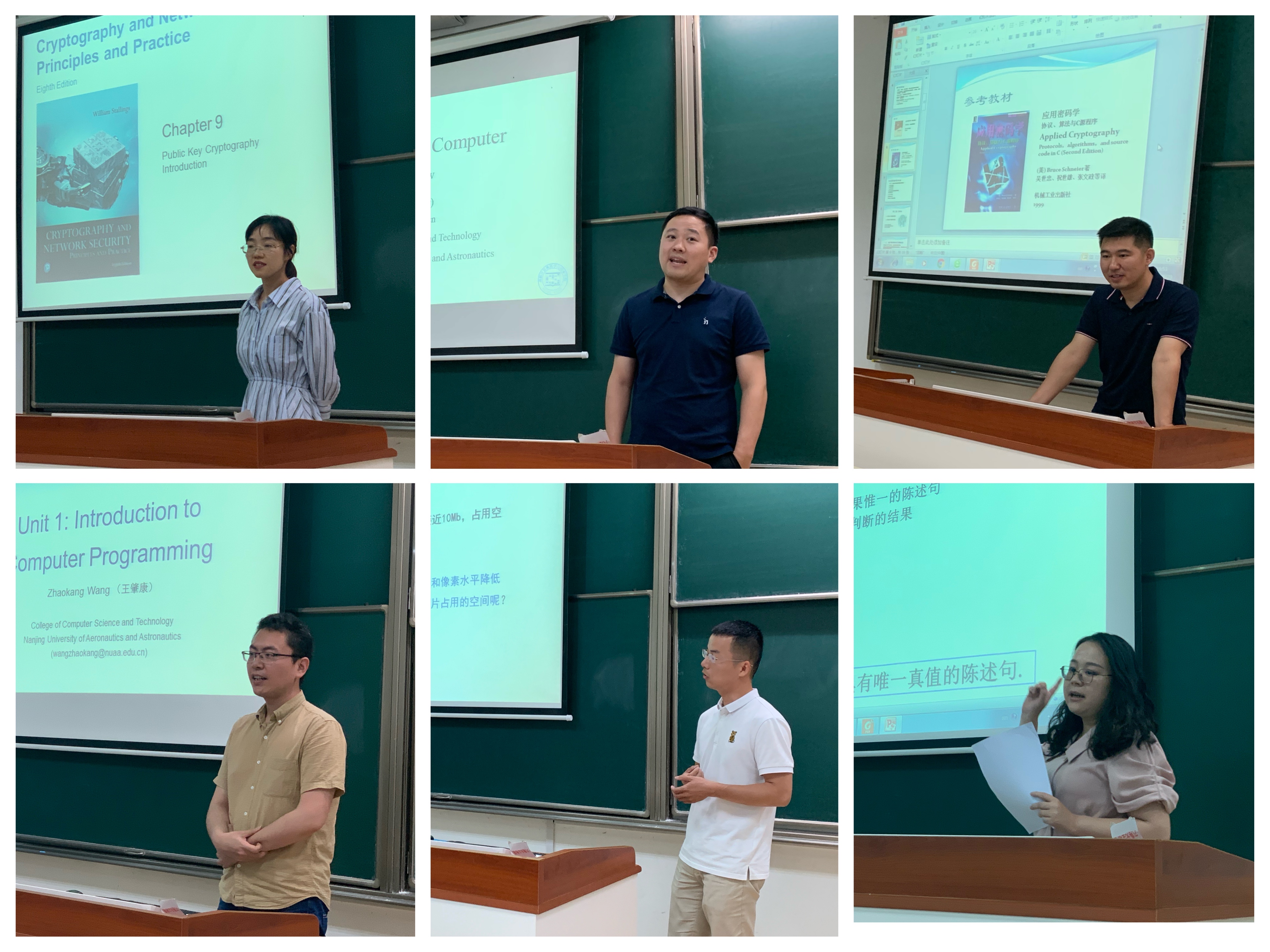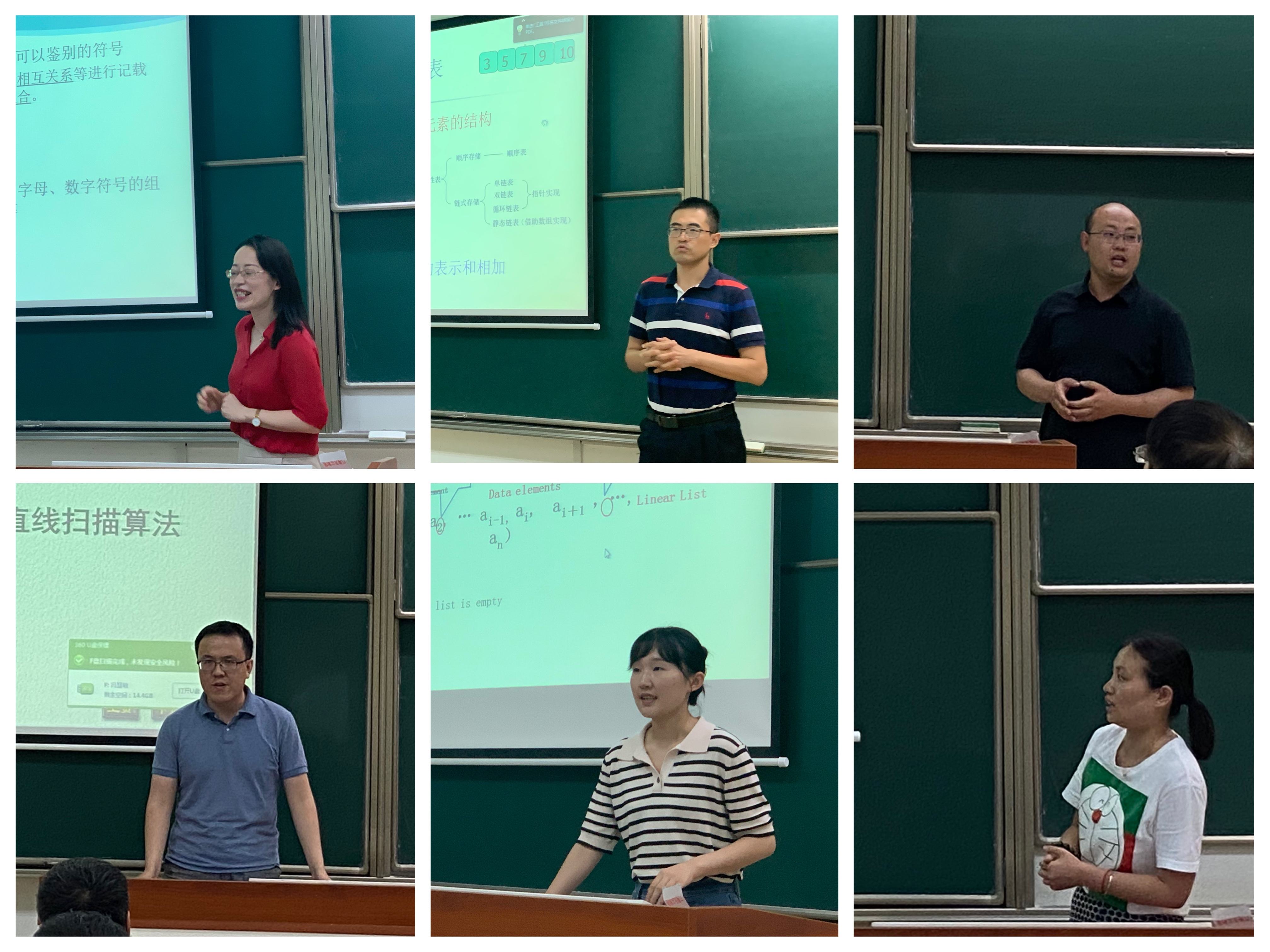 袁伟伟、许建秋作为教学经验丰富的老师率先试讲了数据结构、信息检索与数据挖掘课程,袁老师教态端庄优雅,教风从容淡定,教学思路清晰明了;许老师稳重儒雅,教学思维敏捷,为新进教师做出了良好示范。刘哲、宫丽娜、李伟湋、李野、邵伟等老师对密码学、Python程序设计语言、离散数学等专业课程做出精彩讲解,李娟、王肇康、胥帅、周璐围绕数据结构、C语言程序设计等课程为国际教育学院的留学生们精心准备了全英文授课内容。