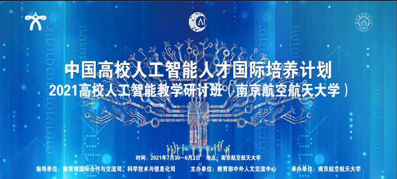 7月30日至8月3日,“中国高校人工智能人才国际培养计划”2021高校人工智能教学研讨班(南京航空航天大学)成功举办。本次研讨班由教育部国际合作与交流司、科学技术与信息化司指导,教育部中外人文交流中心主办,南京航空航天大学承办。来自南京大学、复旦大学、西安电子科技大学等全国近50所高校的100余名教师参加研讨班并顺利结业。