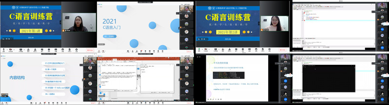 “C语言训练营”于8月19日和21日分两期开展,由2021级本科生辅导员韩桂馨主持,邀请了2019级本科生卫凌禹、吴政徽分别为同学们带来题为“C语言入门简述”和“C语言深入讲解与练习”的两场专业学习讲解。卫凌禹从C语言的历史与重要性出发,为同学们详细介绍了程序编写到运行的各个环节,并现场演示输出“Hello,World”经典程序,鼓励同学们尝试编写自己的第一个程序。吴政徽进一步向同学们介绍了变量、数据类型及运算符和循环等基础知识,便于同学们后续推进相关知识学习与编程练习。