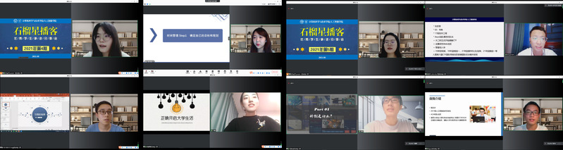 “石榴星播客”优秀学生事迹分享会于8月18日和20日分两期开展,由2021级本科生辅导员许彧文主持,邀请了学院6位高年级优秀学生分享自身学习成长经历。在时间管理技巧方面,2018级本科生金玥结合自身经历建议同学们一要树立明确目标,二要合理安排阶段任务,三要合理利用碎片化时间。在学习习惯养成方面,2019级本科生马睿在学习模式转变、合理安排预习和复习、有效利用各类资源、摆正学习态度、营造良好的学习环境等方面结合自身经历给同学们提出了相关建议。在适应大学学习生活方面,2020级本科生季馨婷在调整自身状态、确立自身目标、主动寻找资源、积极争取机会、锻炼独立能力、把握自身节奏等方面给同学们提出了相关建议。在实践能力培养方面,2017级本科生刘志赞、2018级本科生宋鹏霄、2019级本科生钱品亦分别结合自身科创、竞赛经历,在打好专业基础、积极主动实践、学会利用资源等方面给同学们提出了切实可行的建议。