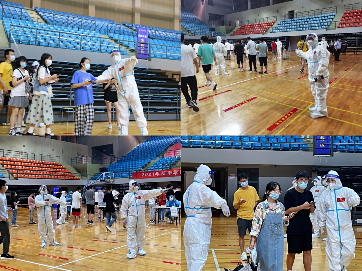 9月24日下午,参加志愿服务的师生党员提前抵达体育场,在校区管委会工作人员的指导下,穿戴好防护服,正式上岗。“请同学们保持一米间隔、戴好口罩、准备好身份证和采样码”,是现场说的最多的一句话;防护装备下被汗水浸湿的衣衫、发红的脸颊、泡白的双手以及逐渐嘶哑的声音,是现场最真实的写照。大家或协助学生录入信息,或讲解核酸检测流程,或引导学生有序排队,用满腔热忱为学生安全有序返校保驾护航,用实际行动诠释共产党员的责任担当。