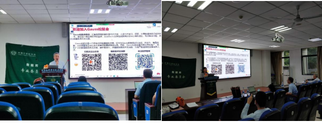 在报告分享过程中,杨晓春教授、陈跃国教授、孙未未教授、高晓沨教授、童咏昕教授、许佳捷教授等在竞赛、建模方面均发表了自己的观点,并回答了线上和线下的各种问题。中场时间,Gauss松鼠会进行宣讲,并进行了线下的抽奖活动。