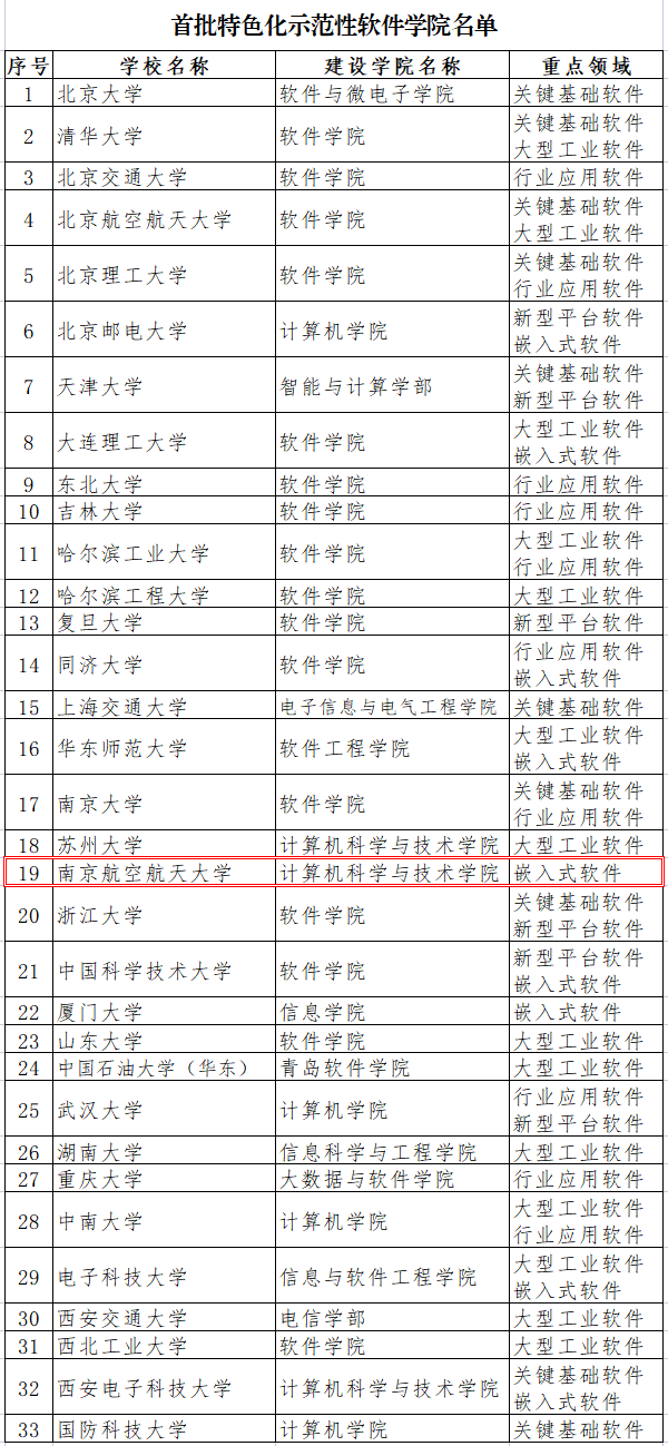 近日,教育部印发《关于首批特色化示范性软件学院名单的公示》,由计算机科学与技术学院负责建设的软件学院入选,重点领域为嵌入式软件。