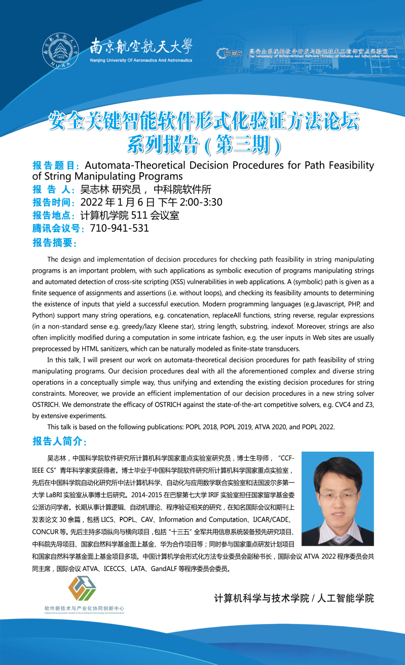 【石榴大讲堂】Automata-Theoretical Decision Procedures for Path Feasibility of String Manipulating Programs