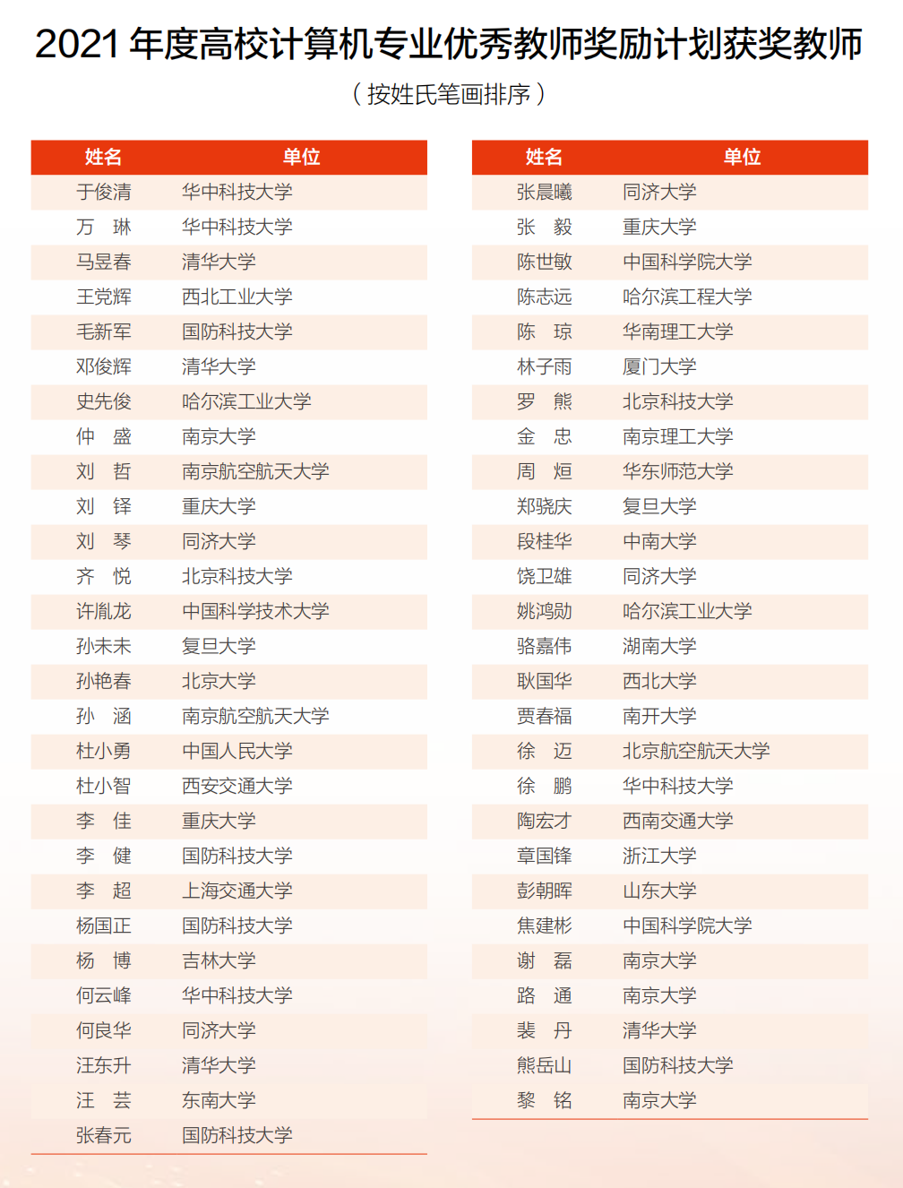 据悉,奖励计划选取计算机专业相关的本科生基础课程,组织同行专家对课堂教学进行评价,对教学优秀的教师给予奖励。按照霍普克罗夫特教授的提议,奖励计划的评价标准包括教学内容、师生互动、关注学生、学生参与和总体评价 5 个方面。奖励计划以全面贯彻落实全国教育大会、新时代全国高等学校本科教育工作会议、《深化新时代教育评价改革总体方案》精神为己任,充分体现“以本为本”“四个回归”、加强本科生教育教学质量的新要求。奖励计划充分发挥高科技企业的影响力,吸引社会力量共同促进高等教育教学质量提升,得到了教育部门领导和各方面的高度认同和广泛赞誉。至此,我院已有3名老师获得此项奖励。