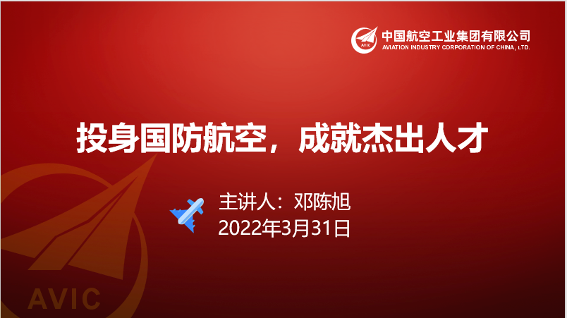 3月31日晚,beat365“石榴国防大讲堂”云端开讲。本次活动邀请成都飞机工业(集团)有限责任公司流程与信息化部运维服务室主任师邓陈旭以“投身国防航空,成就杰出人才”为主题开展专题讲座,吸引学院80余名本科生和研究生参加。讲座由2018级本科生辅导员丁瑶主持。