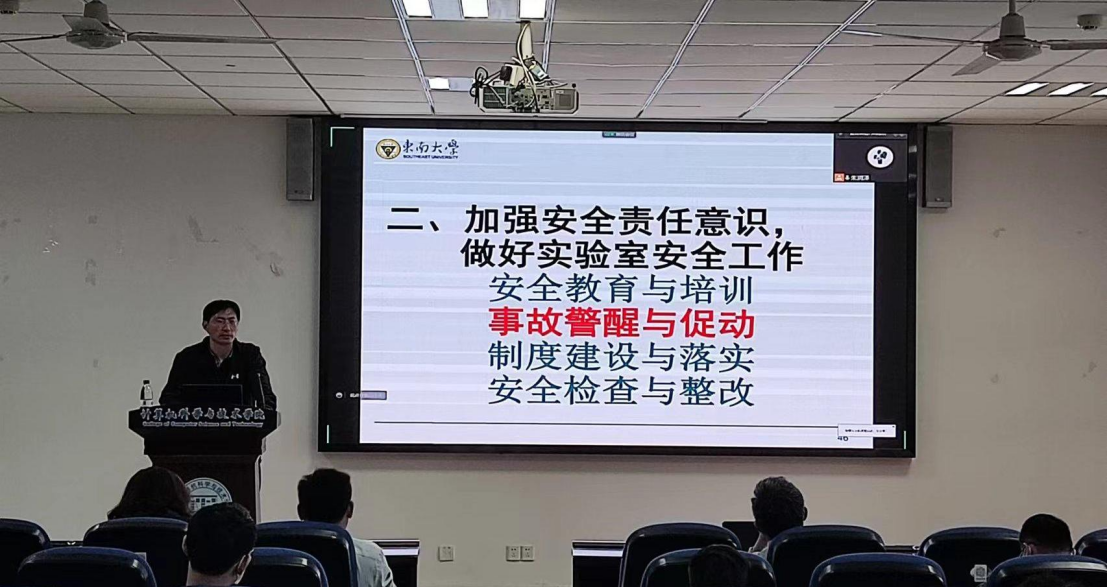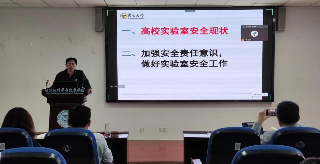 2022年5月10日上午,计算机科学与技术学院/人工智能学院组织召开了实验室安全培训讲座。本次活动邀请东南大学实验室与设备管理处副处长王继刚教授带来主题为“加强安全责任意识,做好实验室安全工作”的讲座,学院书记刘健荣、院长陈兵、副院长燕雪峰、院长助理李鑫、安全员朱润泽以及各实验室、工作室的师生代表参加了此次讲座,讲座由副院长燕雪峰主持。
