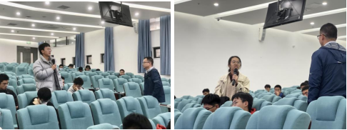 宣讲结束后,李鑫副院长、邹春然老师与同学们进行互动交流,面对同学们积极踊跃的提问,他们鼓励同学们要坚定理想信念,激励同学们多与学院老师沟通交流,勇于尝试,敢于探索。