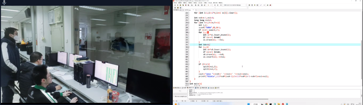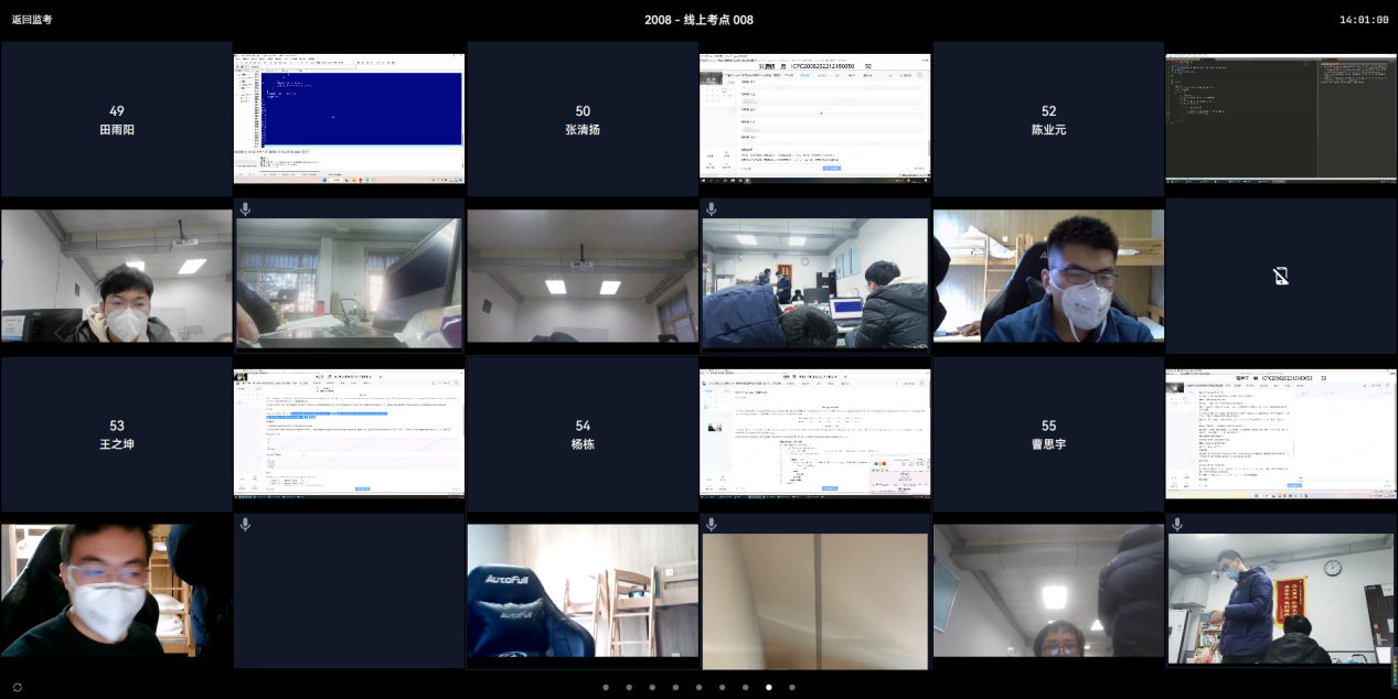 上午11时,比赛正式开始。根据比赛规则,每支参赛队伍应当由3名学生组成,每名参赛学生都需要配置一前一后两个摄像头完整拍摄比赛全过程,所有计算机的屏幕也将实时录屏。比赛依托PTA线上考试平台,实现了对选手端“硬件+软件”双重监控的线上比赛监考方案,有效保障了比赛的公平公正。参赛队伍需要在5小时时间内现场编写程序解答13道竞赛题目,所有程序都将由评测机自动运行并进行评判,无人工干预。队伍排名将由正确解答的赛题数量、答题时间和提交解答的次数等因素决定。