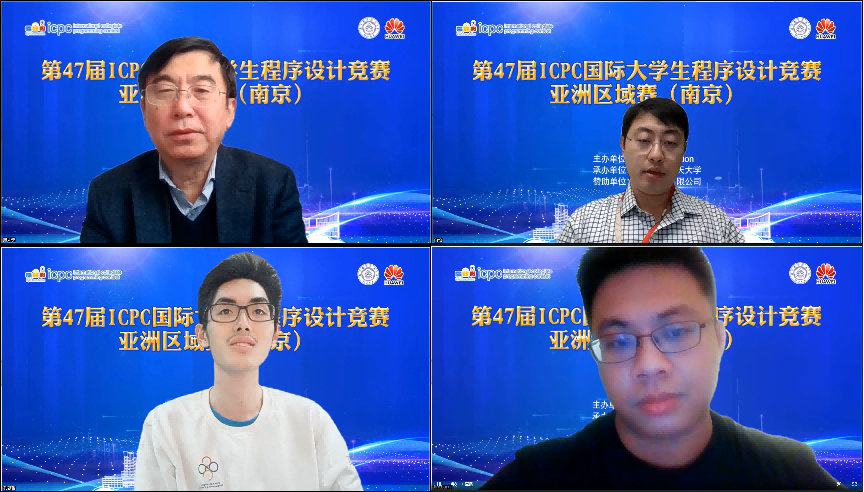 施大宁副校长代表学校致开幕辞,欢迎并感谢各位裁判员、教练员和参赛队员克服困难积极参赛,他指出ICPC国际大学生程序设计竞赛为参赛团队展示才华、编程爱好者增进友谊提供了良好的平台,也希望借此契机与兄弟高校深入交流程序设计教育教学改革的经验和做法,探索计算机卓越人才的培养方式,为实现中国软件高质量发展培育人才。白铂主任代表华为技术有限公司发言,他介绍了华为2012实验室作为华为技术研究与创新中心的定位和专注开展的基础理论与前沿技术研究工作;他结合华为公司内的真实案例,介绍了ICPC竞赛的获奖同学在探索世界级难题、通过优化程序代码改善系统性能中所表现出的优势,希望同学们通过竞赛获得成长。随后,来自北京大学“逆十字”团队的孔朝哲同学作为参赛学生代表发言,他表示ICPC南京站对“逆十字”团队有着特殊的意义,这也将是他们团队的最后一次ICPC亚洲区域赛,在当前这个时候,即便是线上举行的比赛,同一团队的三个人聚集在一起也是非常不容易的事情,希望所有参赛团队无论是否人员完整都能取得优异成绩,也希望所有参赛同学都能注重身体健康,共同度过这段艰难的特殊时期。最后,竞赛裁判组组长、佐治亚理工学院学生陈靖邦同学发言,他指出今天比赛的所有参赛队伍都克服了重重困难,展现了对程序设计竞赛发自内心的热爱,裁判组必将不辜负同学们的热情尽全力维护比赛公平公正,也相信这段特殊时期即将结束,程序设计竞赛也一定会越来越好。此外,他还代表竞赛组委会宣布,依据2022年9月最新发布的ICPC国际大学生程序设计竞赛区域赛规则,为了参赛队伍能更好地展现思维能力和知识水平,也为了ICPC竞赛能更好地推广和普及,本次竞赛将在英文赛题之外,额外提供一份严格对应英文题目的中文版赛题。这是ICPC国际大学生程序设计竞赛正式比赛中首次使用中文赛题。