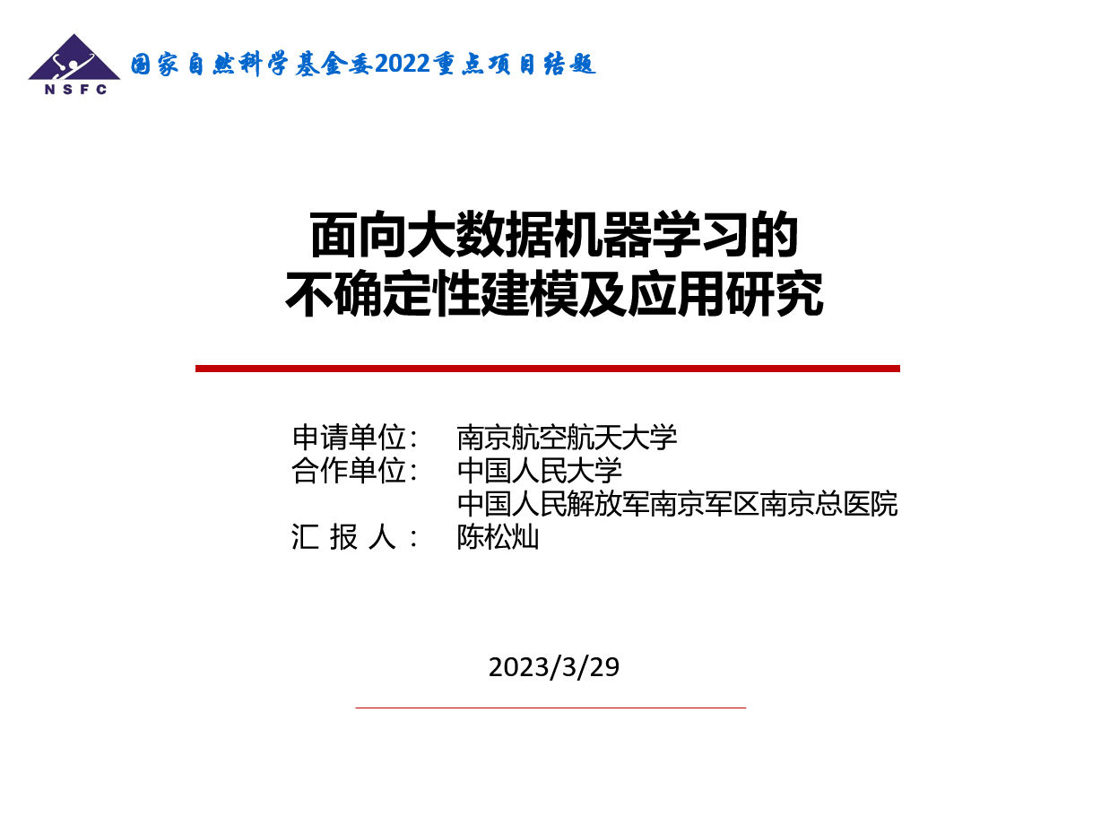 2023年3月13日,国家自然基金委信息科学部信息二处召开了国家自然科学基金重点项目结题验收会。我院陈松灿教授主持的国家自然科学基金重点项目“面向大数据机器学习的不确定性建模及应用研究(61732006)”顺利通过验收,并获评“优秀”等级。