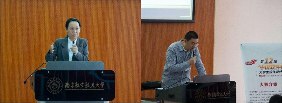 随后,组委会代表杨光对“中国软件杯”大赛进行了详细介绍,从主办机构、赛事目标、赛事宗旨、赛事历史、赛程赛制等方面对赛事状况做了全面讲解,并回顾了南京航空航天大学与“中国软件杯”大赛的历史渊源,感谢学校一直以来对大赛活动的支持和帮助。评审专家代表倪庆剑对第十二届“中国软件杯”大赛的赛题进行了解读,从题目选择、审题和切题、关键技术运用和作品呈现方式等方面对每道赛题进行了一一说明。