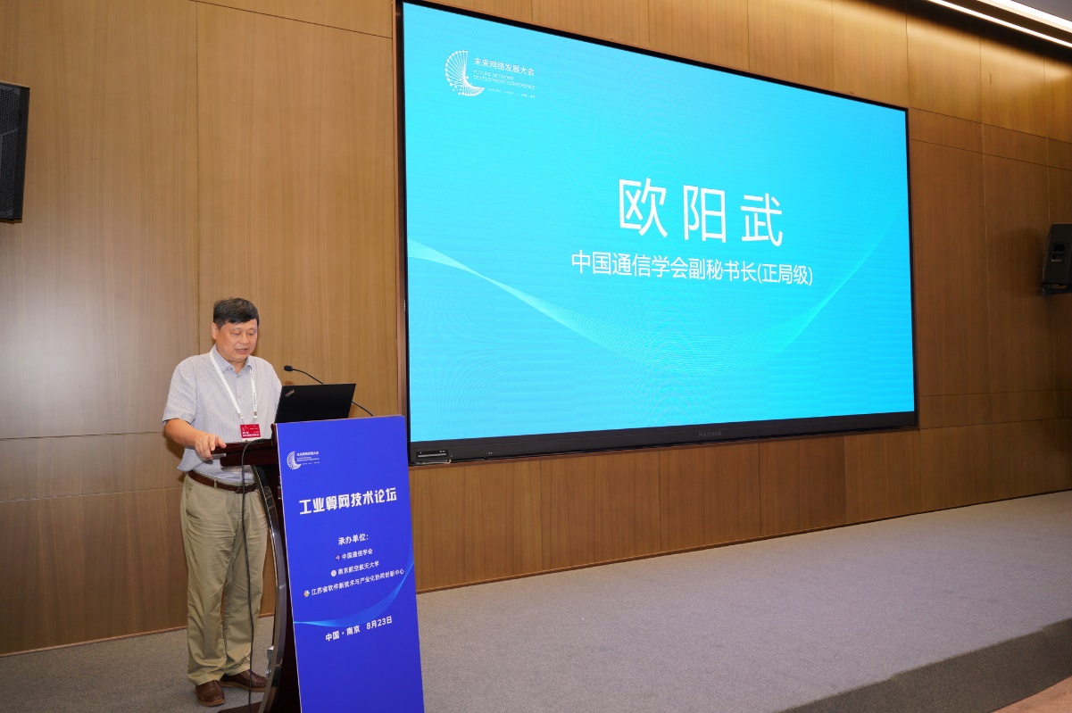 开幕式上,中国通信学会副秘书长(正局级)欧阳武致欢迎辞,他代表中国通信学会,对本次论坛的召开表示祝贺,并对长期以来积极参与和支持通信事业发展的各界人士表示感谢。他指出,通过网络与计算的融合发展形成新的发展范式,在架构、网络、计算、服务等方面具有重大的创新。在过去的几年中,经过各界专家的不断努力,2023年算力网络进入到创新发展的关键时期。他提出,希望同大家一起努力,为工业算网算力网络的发展以及全领域数字化转型贡献力量。
