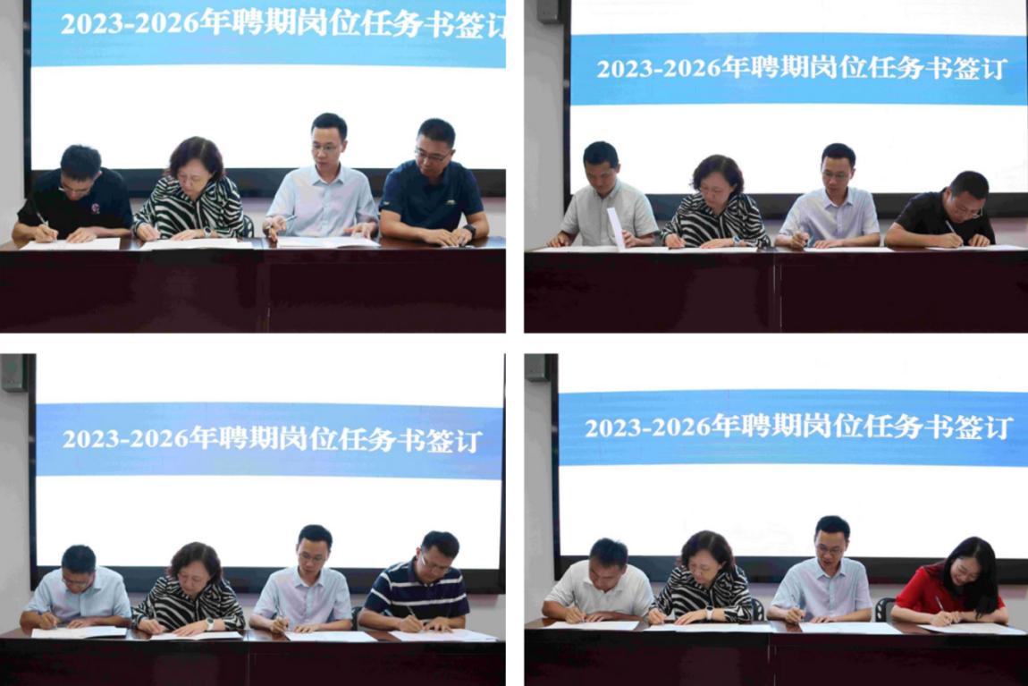 随后,大会举行了2023-2026年聘期岗位任务书签订仪式,学院各系教师代表分别上台签署岗位任务书。