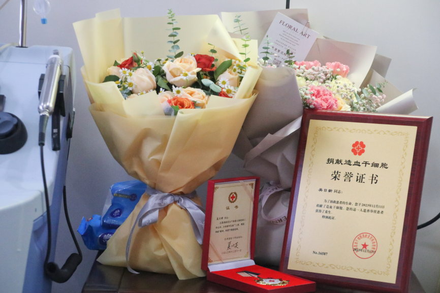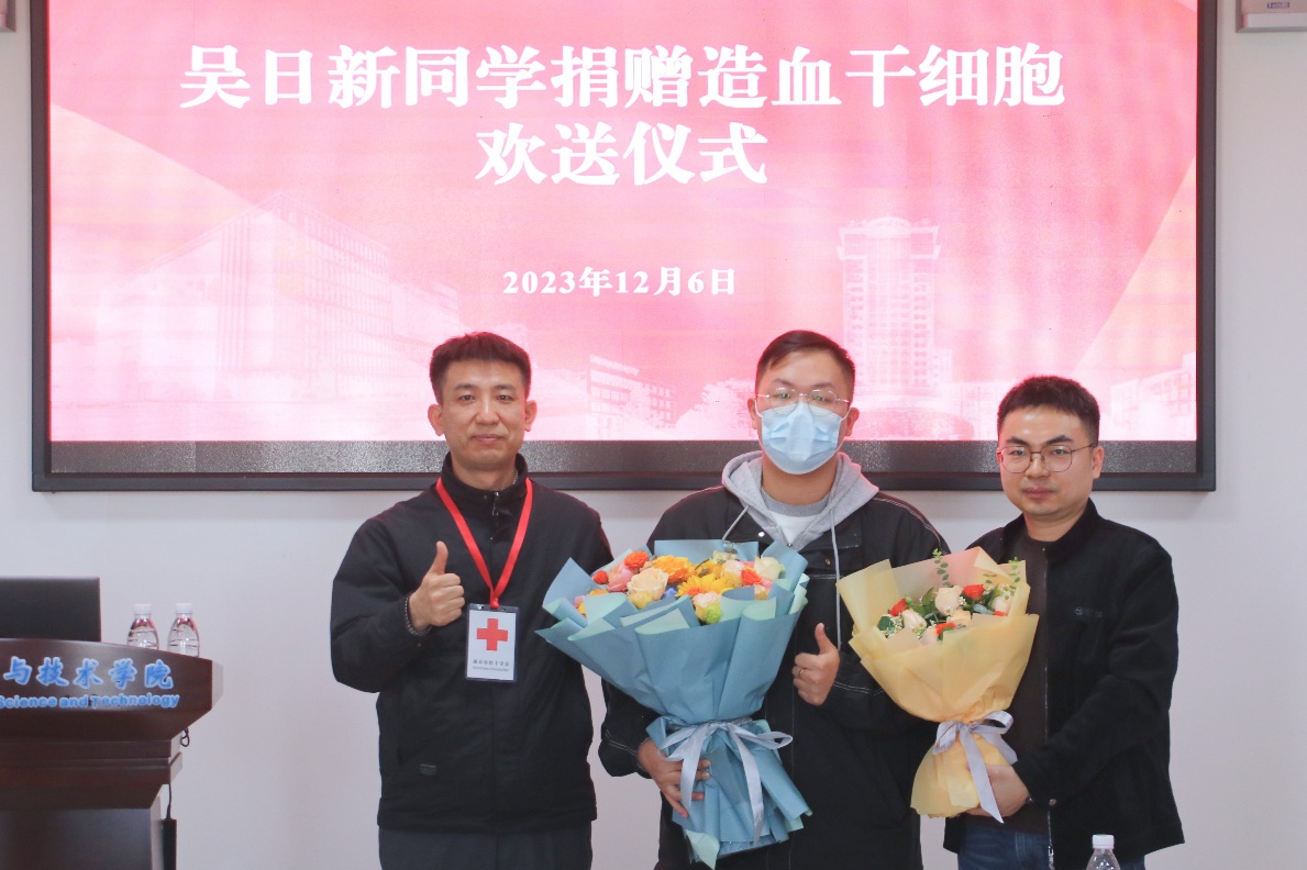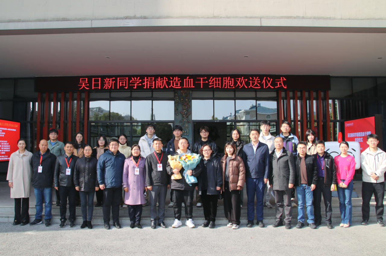 12月6日,学校与南京市、江宁区红十字会一起,为吴日新同学举办了捐献造血干细胞欢送仪式,之后他被送往东南大学附属中大医院,连续四天接受注射细胞动员剂,进行术前准备。